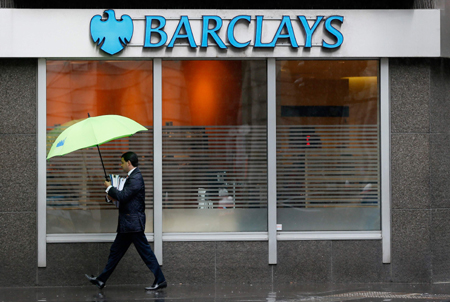 美國和英國的監管部門20日表示,已和六家大型跨國銀行達成總計約58億美元的和解協議,以了結其操縱外匯市場的指控。這六家銀行是巴克萊、摩根大通、花旗、蘇格蘭皇家銀行、瑞銀和美國銀行。 圖為一名男子走過英國倫敦市中心的一家巴克萊銀行。