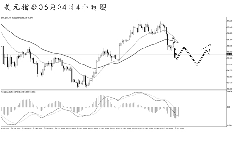 美元指數在經過4個交易日的高位盤整之后連續下跌回調。從日線圖上看,此前兩周的漲勢遭遇到明顯的挑戰,但MACD顯示多頭動能仍然占據優勢。4小時圖均線系統的依托位已被跌破,后市面臨更深程度的下挫。短線美元指數的主趨勢已明顯轉為向下,關注94.80一線的道氏點支撐,美元指數調整過后有望直接向此位置發起挑戰。