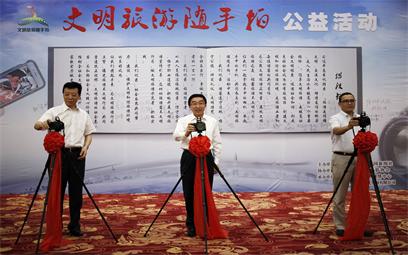 啟動儀式上,主辦方發出了“文明旅游隨手拍”公益活動倡議,號召全社會攜起手來,為文明旅游行為點贊,曝光旅游不文明行為,共同營造扶正祛邪、文明旅游的社會氛圍,為弘揚社會主義核心價值觀,推動全社會文明程度提升,增強國家軟實力做出貢獻。旅游企業代表,領隊、導游、游客代表,以及媒體代表共同簽署倡議書。