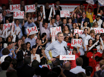6月15日,在美國邁阿密,前佛羅里達州州長杰布·布什出席集會活動,正式宣布參加2016年美國總統大選!。ㄐ氯A社/路透) |