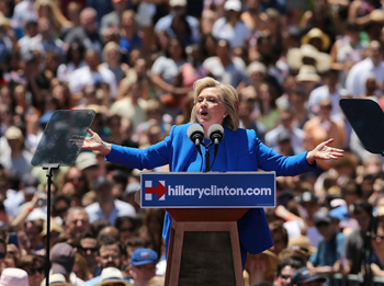 6月13日,宣布參加2016年美國總統競選的民主黨人希拉里·克林頓在美國紐約羅斯福島舉行首場競選集會。