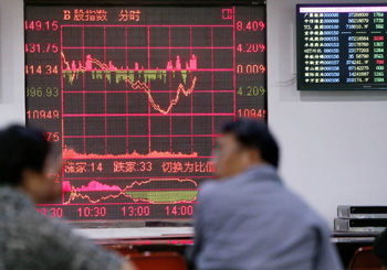 29日,股民在上海一家證券營業部內關注股市行情。 新華社記者 丁汀/攝