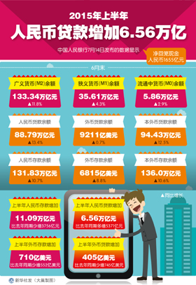 拉動M2增速回升的原因之一是各項貸款同比多增,以致派生存款增加。盛松成指出,今年以來,國家加大了穩增長的政策力度,金融機構相應增加了貸款投放,尤其是中長期貸款和票據融資投放較多。上半年,人民幣各項貸款新增6.56萬億元,同比多增5371億元。其中,中長期貸款新增3.67萬億元,同比多增3848億元;票據融資新增8692億元,同比多增6256億元。
