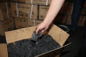 海關緝私人員查獲的涉嫌走私出口的“菊花炭”?!≡S暉月/攝 |