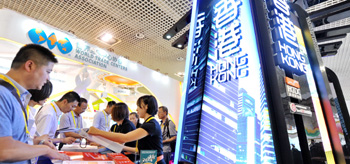 ▲9月8日,參觀者在2015年廈門國際投資貿易洽談會展館香港展位前咨詢有關香港投資情況?!⌒氯A社記者 林善傳/攝 |