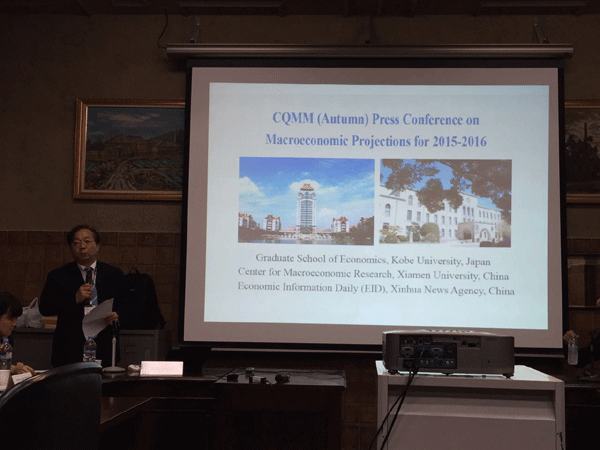 廈門大學、日本神戶大學與新華社《經濟參考報》9日在神戶聯合舉行“中國宏觀經濟國際研討會暨‘中國季度宏觀經濟模型(CQMM)2015年秋季預測發布會’”。廈門大學宏觀經濟研究中心課題組在發布會上指出,2015年中國經濟雖然面臨下行壓力,但經濟增長率有望實現7.0%的政策目標,預計全年GDP增速為7.10%。比2014年小幅回落0.2個百分點。CPI預計上漲1.62%,通貨膨脹率將維持低位穩定。