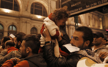 9月8日,中東地區難民在布達佩斯克列蒂火車站等待前往維也納的火車?!⌒氯A社/俄新 |