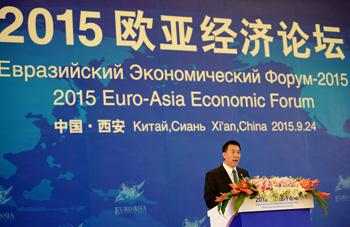9月24日,2015歐亞經濟論壇在西安開幕,國務委員王勇出席開幕式并發表主旨演講?!⌒氯A社記者 劉瀟/攝 |