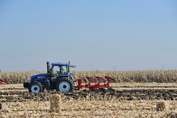 10月14日,一臺土地深松機在吉林省榆樹市環城鄉萬龍村的田間作業?!⌒氯A社記者 張楠/攝