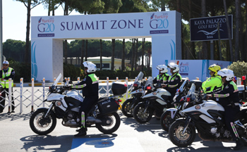 11月11日,在土耳其安塔利亞,警察在二十國集團領導人第十次會議主會場區域內執勤?!∮浾?鄒樂/攝 |
