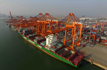 廣西欽州保稅港區碼頭集裝箱待發?!⌒氯A社記者 黃孝邦/攝 |