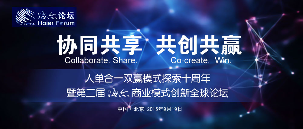 9月19日,“協同共享,共創共贏——人單合一雙贏模式探索十周年暨第二屆海爾商業模式創新全球論壇”在京舉行。與會學者和嘉賓共同見證海爾“人單合一”雙贏模式歷經十年探索與實踐所取得的成果,并深入探討互聯網時代下的商業模式創新之道。