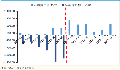 國金證券表示,2015年上半年A股月均減持規模為800億元,其中流通股減持占比接近一半,預計在禁令解除后,市場減持情況將逐漸恢復到正常水平,預計1月二級市場上流動股的減持規模在300億至420億元;對于7月8日之后解禁的限售股減持,將以原首發股東配售股和定增機構配售股為主。預計1月1.2萬億元潛在解禁壓力中的實際減持約1200億至1330億元,上述兩部分相加,預計今年1月實際減持總規模為1500億至1750億元。