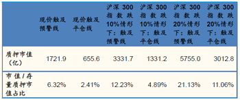 圖表2:壓力測試結果,20%跌幅下有近三成質押市值觸及預警線? |