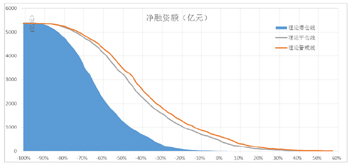 在靜態假設(資金拆借方不作為)的前提下,滬深300指數下跌0%,觸及預警線和平倉線的市值占比分別為6.32%和2.41%,其平倉的壓力市值約為656億元;滬深300下跌10%,觸及預警線和平倉線的市值占比分別為12.23%和4.89%,其平倉的壓力市值約為1331億元;滬深300下跌20%,觸及預警線和平倉線的市值占比分別為21.13%和11.06%,其平倉的壓力市值約為3012億元。上述三種情景假設下的平倉規模均對市場造成了一定的向下壓力。數據顯示,目前理論平倉市值占總市值20%以上的上市公司約有20家。其中,華數傳媒、龍宇燃油理論平倉市值占比分別高達50.26%和50.00%,錦龍股份、中超電纜、大名城、蘭石重裝和金盾股份理論平倉市值占比也均在30%以上。