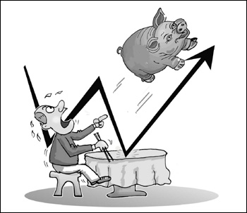 繼2004年、2008年、2011年三輪大幅波動后,豬肉價格的“寒熱病”近期可能會再度發作。有數據顯示,24日全國生豬均價已漲破2011年6月的歷史高點。國家發改委近日發出黃色預警,截至3月9日,豬糧比價為9.13﹕1,處于較高水平,可能會引起養殖戶過度補欄,導致生豬產能過度擴張,使生豬價格很快進入下跌通道。業內擔憂,生豬行業恐怕又將重回“母豬補欄補到過剩,豬價下跌跌至虧損”的老路。