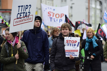 美國總統奧巴馬4月底訪問德國期間,就遭遇了很多德國人的強烈抗議。德國副總理、社會民主黨領導人加布里爾直言不諱地表示,他感覺奧巴馬是來“推銷美國貨的”,“TTIP就是為了讓歐洲人買盡可能多的‘美國制造’”。加布里爾表示,假使美國不讓步,德國就不會簽署TTIP。