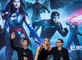5月19日,電影《X戰警:天啟》見面會在北京舉行,主演伊萬·彼得斯、索菲·特納以及該片導演布萊恩·辛格(從左至右)同粉絲互動。