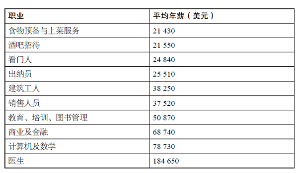 總的來看,你應當選擇一位能夠保證你的家庭收入超越貧苦線且享有一些余裕的伴侶。這個標準并不高,因為在可選的伴侶中,有80% 的人都處于貧困線之上。以家庭收入為單位,也就是說,如果你有工作的話,那么你與伴侶兩人的工資總和才能說明問題。從下圖的職業收入對照表中我們可以看出,如果你是商業及金融行業的從業者,那么無論你對象的職業屬于下列哪個行業,你們的家庭收入都能超過75 000 美元。