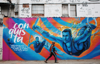 6月24日,里約熱內盧街上的奧運會宣傳畫。2016年8月5日至21日,第31屆夏季奧運會將在巴西的里約熱內盧舉行。 新華社發? |