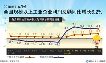 國家統計局7月27日發布的工業企業財務數據顯示,1至6月份,規模以上工業企業利潤同比增長6.2%,增速比1至5月份回落0.2個百分點,主要受3月份較高增長的影響。其中,6月份利潤同比增長5.1%,增速比5月份加快1.4個百分點。專家表示,6月份工業企業利潤增長加快,主要受工業生產和銷售增長有所加快,產品價格降幅繼續收窄影響,工業企業降本減負效果顯現,庫存壓力繼續減緩。但是,制約企業效益向好的不利因素仍然存在,目前的利潤增長不夠均衡,新增利潤集中于少數行業,未來整體工業生產難言樂觀。