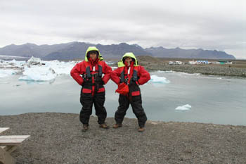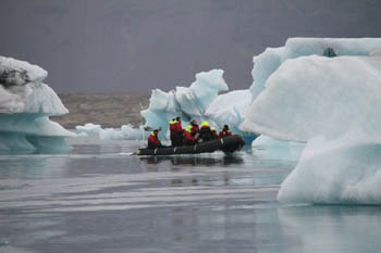 靠近冰湖時,會有明顯的降溫,風也變得更刺骨。好在游船公司都會給每位游客套上一身超級防風保暖的連體衣。由于沒有提前預訂,幸運的我們居然趕上了最后一班游船。選擇游船也有講究,一般來說大船穩,小船也就是沖鋒艇快,而且靈活,可以更加深入地穿行在狹窄的大塊浮冰中間,這點經驗日后在觀鯨時也能用上。