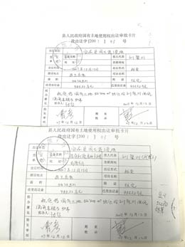 記者了解到,該土地出讓前,劉聚川與利源公司及另外一合伙人曾謀求共同出資拍賣和開發土地,但后來三方合伙人出現糾紛,土地歸屬開始出現爭議。而利源公司也反映,安平縣國土局檔案材料存在造假行為,《國有土地使用權拍賣出讓成交確認書》、《國有土地使用權出讓審批卡片》都出現兩個版本。利源公司認為,劉聚川和拍賣公司、縣財政局、縣國土局中個別人共同弄虛作假,存在偽造國土局檔案材料的重大涉法問題。