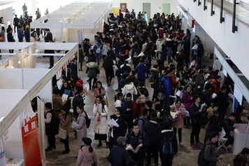日前舉辦的“2017年北京地區畢業研究生專場供需見面、雙向選擇招聘會”為求職者提供就業崗位1.6萬個。新華社發(陳曉根攝)? |