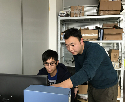 羅全勝(右)在與運營人員分析網上銷售業績。如今,他經營的跨境電商與淘寶月營業額分別高達12萬美元與120萬元人民幣。