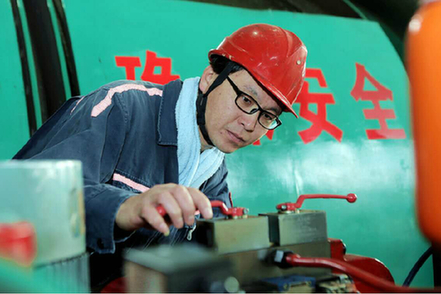1月17日,李偉在岱河礦業公司維修設備。李偉是中國眾多“煤二代”中的一員。父親曾在煤礦通風區放炮隊工作,自己畢業后從事維修電工崗位也已經18年。