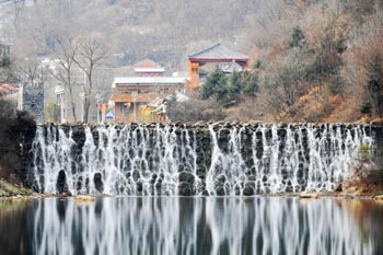 沿梅園河上行,就是梅園溝天然森林風景區。兩山對峙,蜿蜒五六十里,翠色莽莽蒼蒼,河水奔騰流瀉。掩藏在深邃密林間的公路,都被濃蔭覆蓋著,如在詩畫中行走。
