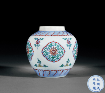 ??? 清雍正 仿成化斗彩開光折枝蓮紋罐“大明成化年制”款 |