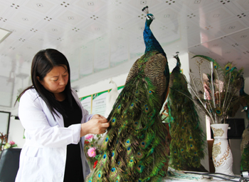 ??? 周海燕在制作孔雀標本。譚艷麗 攝