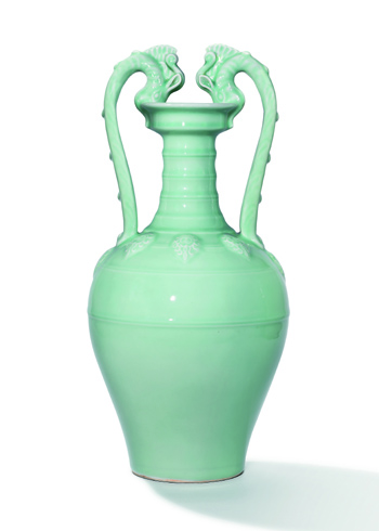 ??? 雍正粉青釉貼花雙龍盤口尊 |