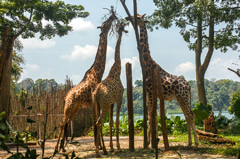 夜幕降臨之際,夜間野生動物園開門迎客。1994年開業的夜間野生動物園毗鄰新加坡動物園 ,是全球首個展示夜間動物的野生動物園。走進“暗無天日”的動物之家,你需要花點時間適應黑暗;這之后,眼前就會出現130多個品種的2500多只動物,其中許多是本地土生土長的動物,例如瀕臨滅絕的亞洲象、馬來貘和馬來虎。這些動物生活在35公頃茂密的熱帶雨林之中。小鹿等友善的動物會在夜間動物園內自由漫步,花豹等較為兇殘的動物只能待在籠子里。想以車代步游園的話,可搭上全長35分鐘、配有現場解說的觀光電車,帶領游覽全球七大洲,從崎嶇不平的喜馬拉雅山脈到赤道非洲的沼澤地,各具特色。動物園內有四條徒步探索小徑,你也可以深入叢林探險,發現更多電車看不到的動物。
