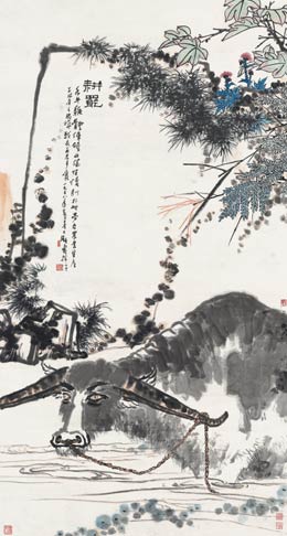 中國書畫是本季拍賣的重中之重,其中,黃賓虹、李可染、潘天壽等人之宏幅巨制尤為矚目。黃賓虹《黃山湯口》為畫家生命最后一年集大成之作,蒼茫渾厚,為陳叔通舊藏,一直以來神龍見首不見尾,此番現身備受關注。李可染《雄關漫道》氣象萬千,洋溢著革命浪漫主義的昂揚情懷與畫家雄奇壯闊的瑰麗巧思,結構規整,筆墨謹嚴,代表了畫家盛期山水創作的巔峰狀態。潘天壽《耕罷》則沉雄闊大、生機勃勃,給予觀者極強的視覺震撼,匯集了畫家諸多經典語匯,具有極高的藝術價值與歷史價值。