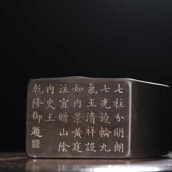 北宋定窯刻“尚藥局”款蓋盒也是此次春拍重器之一。尚藥局設立初始即為專事負責皇帝醫療事務的中央機構,正式創立于北魏孝文帝時期,宋朝較前朝更加注重醫學,名醫云集。此器應為目前唯一可流通的北宋皇家用瓷,更為難得的是有著非常清晰的來源著錄,1905年自巴黎拍出,即源自張靜江、姚叔來、盧琴齋等創辦的通運公司,當屬通運公司創始階段售出的精品器物之一。此外,著錄于《欽定西清硯譜》的清乾隆御銘舊端石七光硯也將上拍,其刻乾隆御題詩,后賜予皇十一子,即成親王永瑆。西清硯譜記載之硯大部分均藏于兩岸故宮,此前拍場從未出現。此硯與硯譜所記所繪紋理、石眼位置一處不差,尺寸銘文各項無一不合。