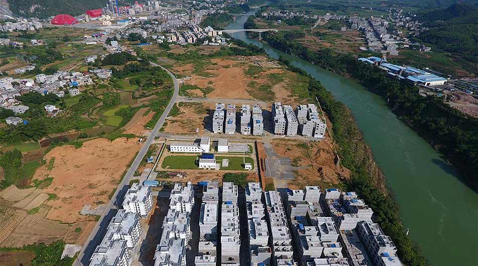 正在建設的都安紅渡扶貧移民新城(7月25日攝)。