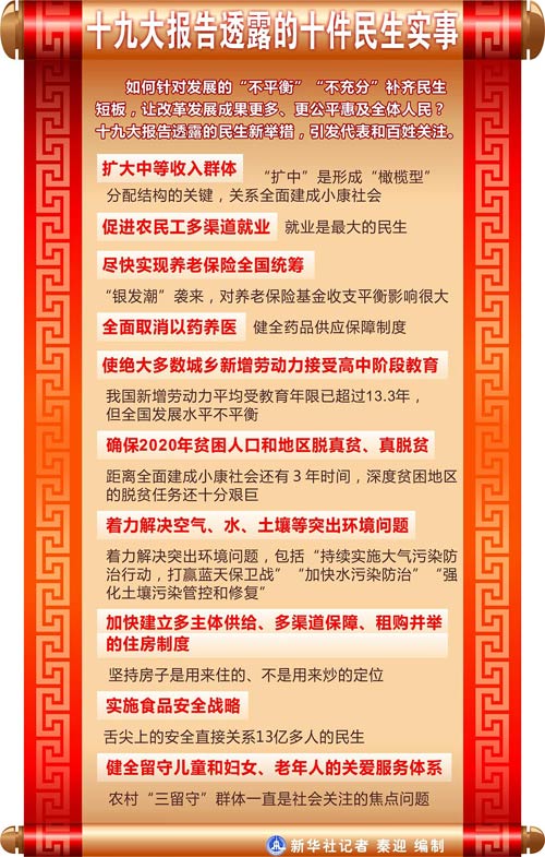 圖表:十九大報告透露的十件民生實事 新華社記者 秦迎 編制