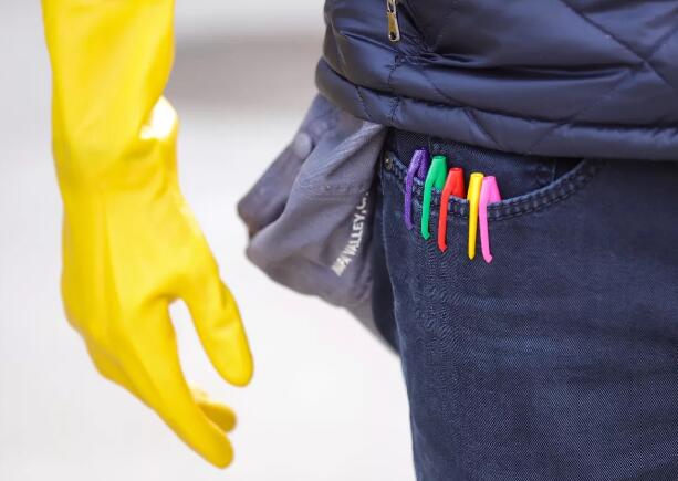 摩塞爾腰間永遠插著一排筆,不同顏色代表不同的工作優先級