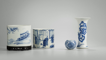 十七世紀景德鎮瓷器的輝煌成就,離不開大批文人雅士的參與。把經典、傳統的藝術與美學的原則、標準、追求,傾注在瓷器的創造上,使純粹的文人趣味史無前例地全方位體現在過渡期的瓷器上,無論是齋室里的花器,還是書案上的文具,瓷器業已成為了藝術品位的象征與情才遣懷的寄托了。自隆慶元年開海禁之后,東西二洋與中國的貿易迅速發展起來,至十七世紀達到頂峰,景德鎮瓷器是海外市場需求最大的商品。荷蘭東印度公司在中國大量購買瓷器運往歐洲各國,風靡一時。而日本正處于江戶時代初期,德川家康坐穩了天下,以小堀遠洲為代表的茶師大力弘揚茶道文化,向景德鎮訂燒了形形色色的瓷器,造型紋飾獨樹一幟,一個嶄新的時代拉開了序幕。明末清初外銷至日本的景德鎮瓷器,主要包括“古染付”、“祥瑞”、“南京赤繪”、“明末清初手”等多種風格的各類茶器、香道具及料理器具。本次展覽展出一批富有代表性的外銷日本器物,反映出十七世紀中日文化交流的軌跡。
