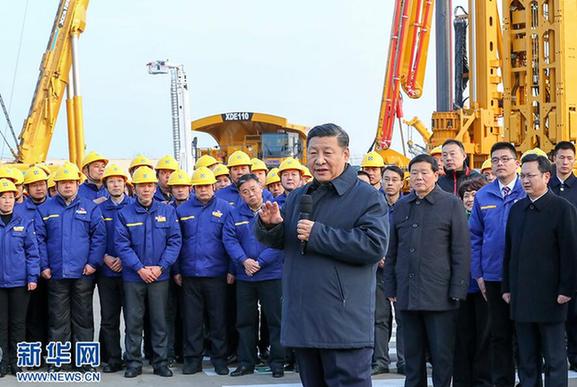 12日,習近平從北京到達徐州后,首先考察了徐工集團重型機械有限公司。徐工集團的前身始于1943年創建的八路軍魯南第八兵工廠,近年來自主研發的多種重型機械市場占有率名列前茅,產品銷往世界,同時在國家開發智能制造、參與軍民融合發展、參加“一帶一路”建設等方面取得重要進展。習近平結合展板詳細了解企業經營發展、自主創新、國際合作、人才培養、黨的建設等情況,肯定企業繼承紅色基因、適應時代發展取得的成績。他強調,國有企業是中國特色社會主義的重要物質基礎和政治基礎,是中國特色社會主義經濟的“頂梁柱”。要按照黨的十九大部署推動國有企業深化改革、提高經營管理水平,使國有企業成為貫徹新發展理念、全面深化改革的骨干力量,成為我們黨執政興國的重要支柱和依靠力量。