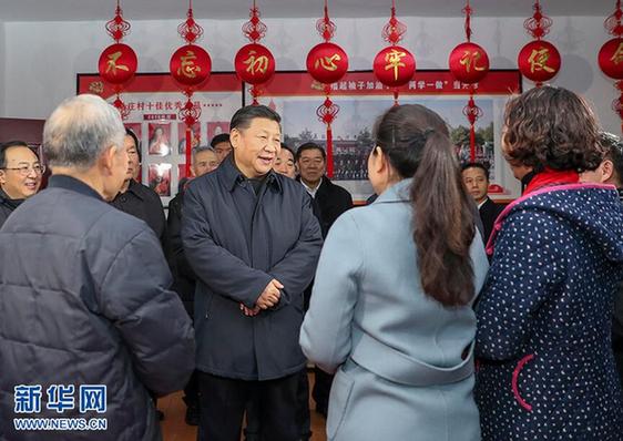 之后,習近平又來到附近的潘安湖街道馬莊村考察。在村史館,習近平看圖片、看資料、看實物,肯定該村從單純以煤為生轉型到多種產業共同發展的經驗,指出發展特色產業、特色經濟是加快推進農業農村現代化的重要舉措,要因地制宜抓好謀劃和落實。在黨員活動室,習近平走進正在學習黨的十九大精神的黨員中間,聽他們談學習體會,看他們的學習筆記,問他們感受最深的是什么、有什么意見和建議,希望他們在學習貫徹黨的十九大精神中發揮積極作用。他指出,農村基層黨組織是農村各個組織和各項工作的領導核心,要強化農村基層黨組織職能,把農村基層黨組織建設成為宣傳黨的主張、貫徹黨的決定、領導基層治理、團結動員群眾、推動改革發展的堅強戰斗堡壘。