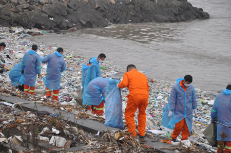 “我從來沒見過這么多的垃圾,紅色、黑色、白色……各色廢棄塑料袋、塑料瓶隨著江濤起起伏伏,其間還夾雜著一些醫療垃圾。堤岸斜坡也被江水沖上來的垃圾鋪滿,相比日常的垃圾量多了不知多少倍?!睍r隔一年,太倉海事局第二海巡執法大隊大隊長徐益輝仍記憶猶新。