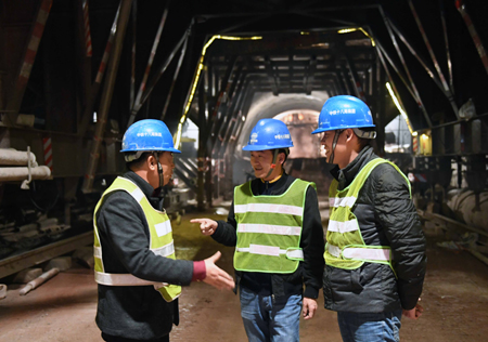 1月3日,中鐵十八局集團公司的工程技術管理人員在墨臨高速公路文新一號隧道商議施工方案。