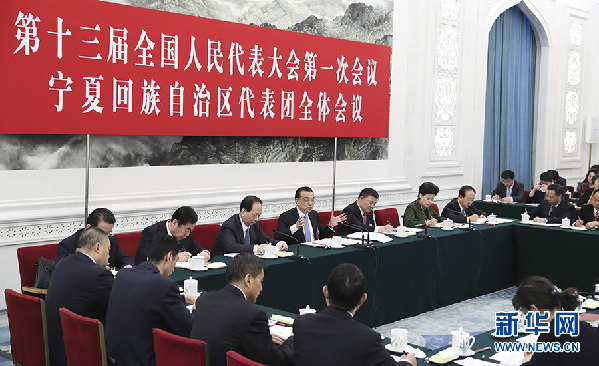 李克強在寧夏代表團參加審議。在聽取石泰峰、咸輝、馬慧娟等代表發言后,李克強表示,完全贊成最高人民法院、最高人民檢察院的工作報告。他說,寧夏是西部民族地區,過去5年經濟社會發展成績令人矚目。希望寧夏以習近平新時代中國特色社會主義思想為指導,落實好黨中央、國務院推進西部大開發部署,打造內陸改革開放新高地,以深化“放管服”改革優化營商環境,把市場主體活力更好激發出來,為群眾辦事提供更多便利。推進供給側結構性改革,淘汰落后產能,釋放先進產能,發展先進制造業,不斷培育新動能。著力保障和改善民生,堅決打贏脫貧攻堅戰,加大生態保護力度,國家支持改善交通等基礎設施、基層文化設施條件,積極發展“互聯網+”醫療、教育等,使各族群眾的生活一年更比一年好。
