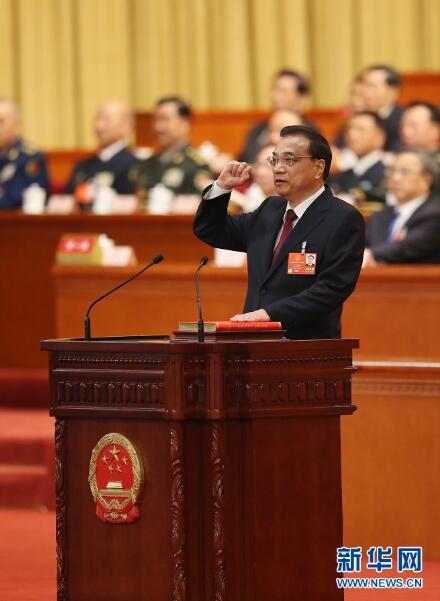 3月18日,十三屆全國人大一次會議在北京人民大會堂舉行第六次全體會議。大會經投票表決,決定李克強為中華人民共和國國務院總理。這是李克強進行憲法宣誓。新華社記者 姚大偉 攝