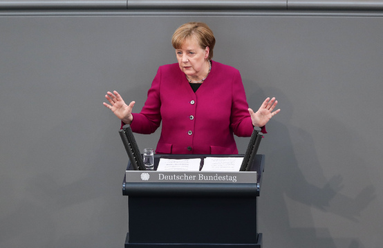 3月21日,在德國柏林,德國總理默克爾在聯邦議院發表德國新政府成立后的第一個政府聲明。
