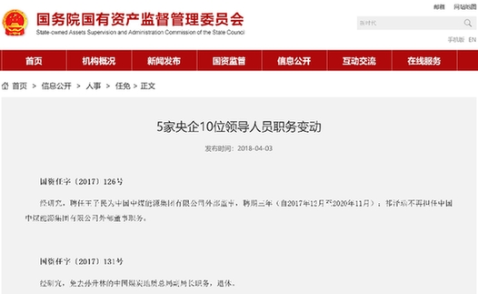經研究,聘任王子民為中國中煤能源集團有限公司外部董事,聘期三年(自2017年12月至2020年11月);祁澤瑞不再擔任中國中煤能源集團有限公司外部董事職務。