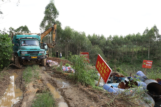 2016年以來,廣西發現跨省傾倒的危險廢物總量達到2.3萬噸。在來賓市的興賓區、武宣縣、象州縣等地,均發現有危險廢物從廣東非法轉移過來堆放、傾倒、填埋,數量驚人。
